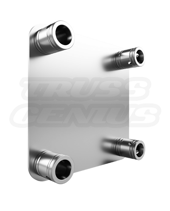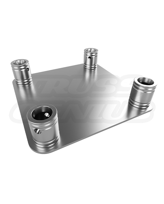 Finished in a clean brushed aluminum appearance, this base plate integrates seamlessly into professional staging and AV systems. It is designed for use with EVT290S 290 mm square truss sections and serves as a reliable foundational piece for both permanent and portable installations requiring precision spacing control.