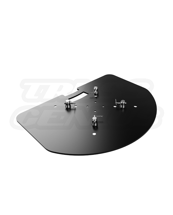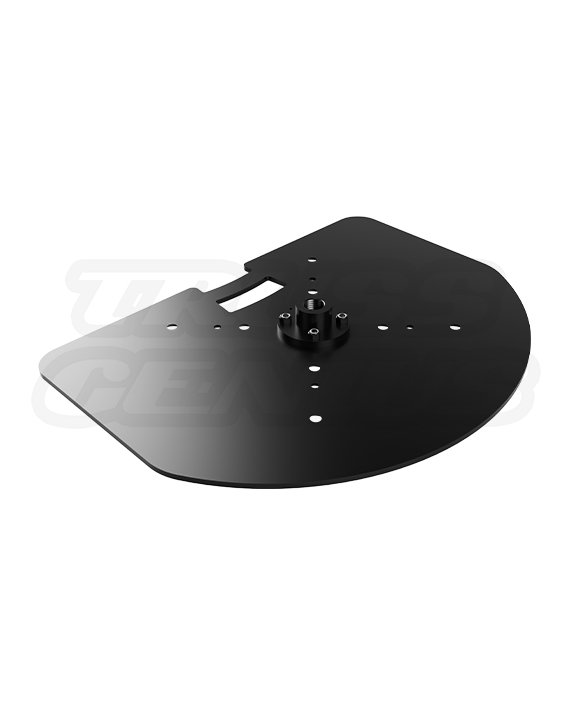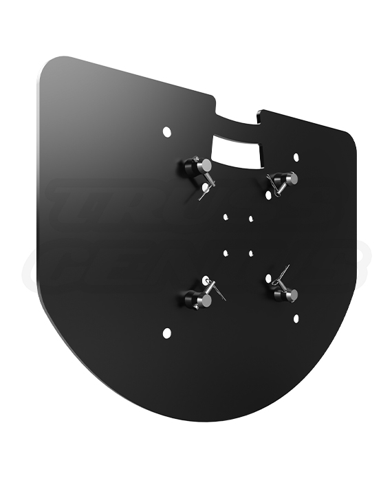 This semi-circular base features a rounded front and a flat rear edge, allowing for flush mounting against walls or backdrops—ideal for setups in tight or constrained spaces. The plate includes precision-drilled bolt patterns specifically aligned for EVT290S truss segments. While optimized for the EVT290S, the design is also compatible with EVT12S and EVT20S truss series. Please inquire for other compatibility options.