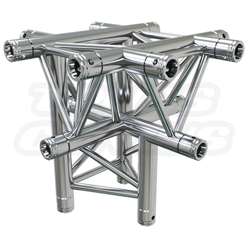 The EVT290T-5WCD Triangular Aluminum Truss Cross Junction offers medium-duty weight-loading capabilities, strong while still providing a decorative look. Fabricated according to TUV specifications with high-quality 6082-T6 alloy aluminum, these trusses are connected using a simple, fast, and secure conical connection system. This junction includes the conical receiver and the conical coupler, for added safety.