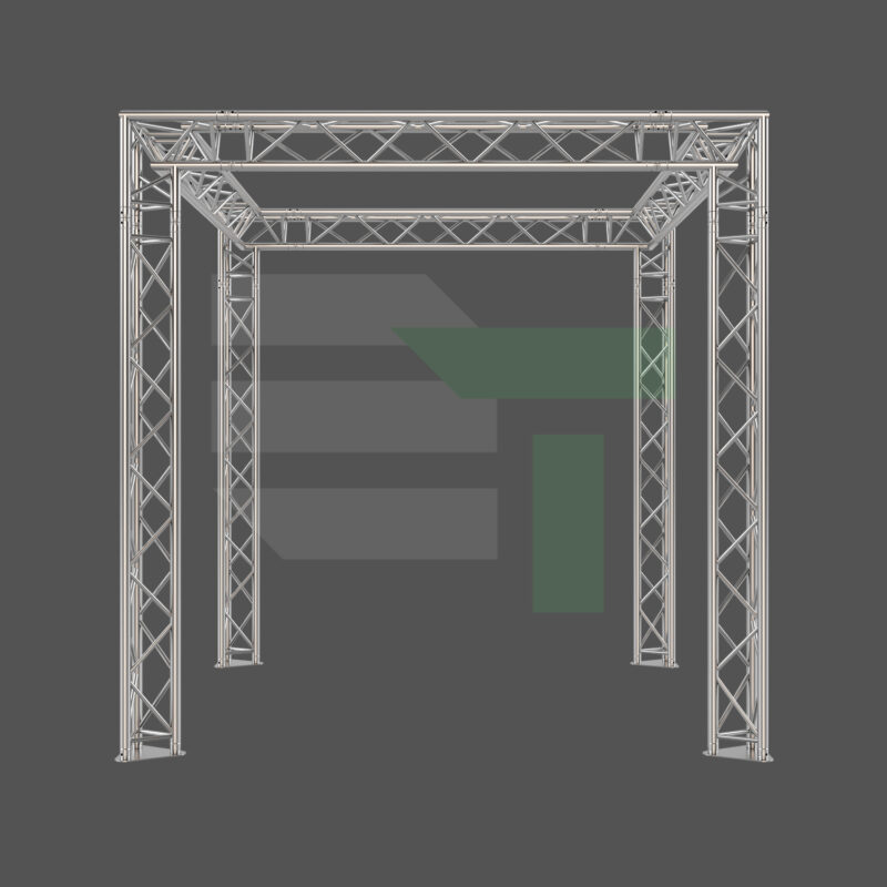 This kit utilizes the EVT290T Series (290mm / 11.42″ wide) triangular truss. It features standard 50mm (2″) main chords, making it fully compatible with standard rigging clamps for lighting and AV equipment. The apex-down or apex-up orientation options allow for creative lighting angles. It uses a secure conical connection system for rapid assembly requiring only a small hammer.